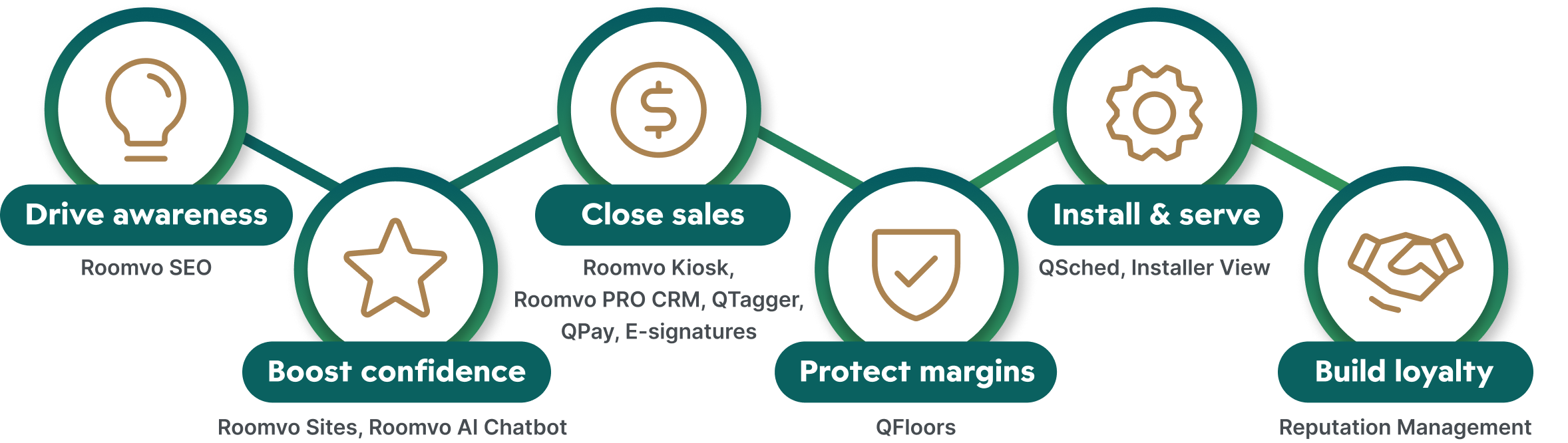 Roomvo is the leading visual commerce platform in home décor, powering over 1 billion product visualizations worldwide. Together with QFloors’ award-winning software, you get one unified system designed to protect margins, accelerate cash flow, and keep your business running smoothly.